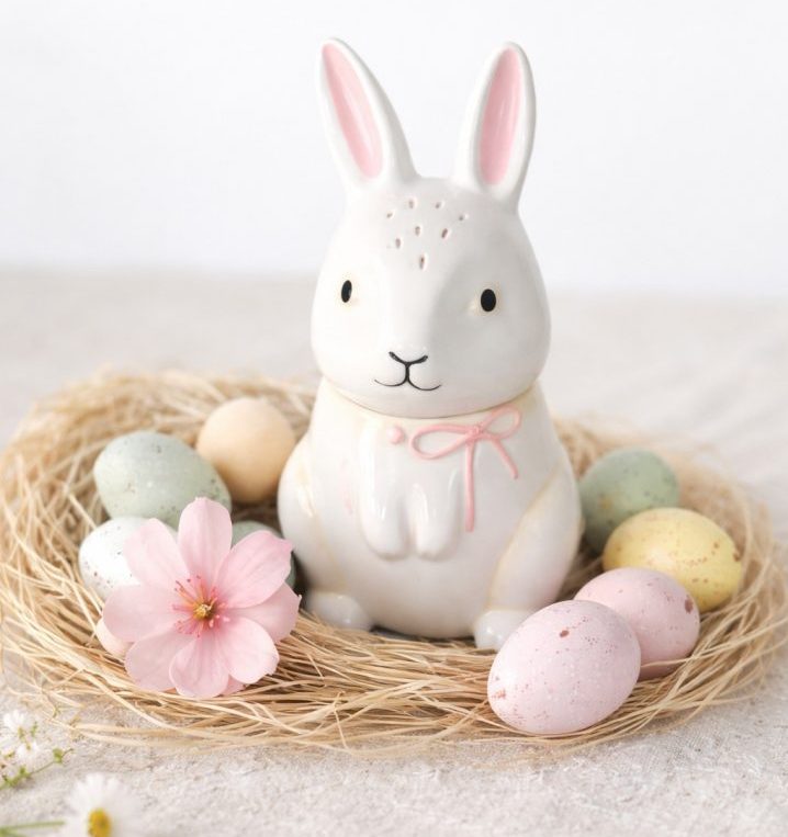 Un adorable brûle-parfum en forme de lapin, parfait pour une décoration printanière et pour diffuser vos fondants parfumés avec douceur.