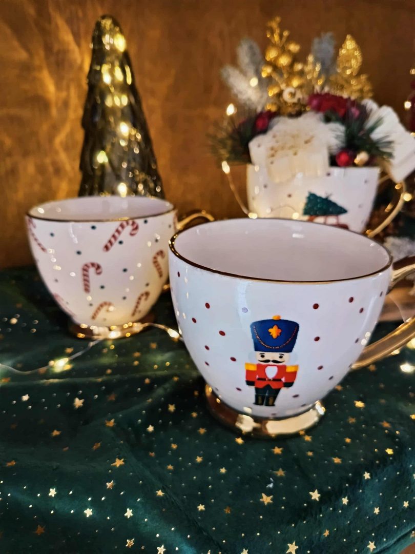 Elles sont réalisée à la main dans une tasse décorative aux motifs festifs : sucre d’orge, voiture de Noël ou Casse-Noisette.
