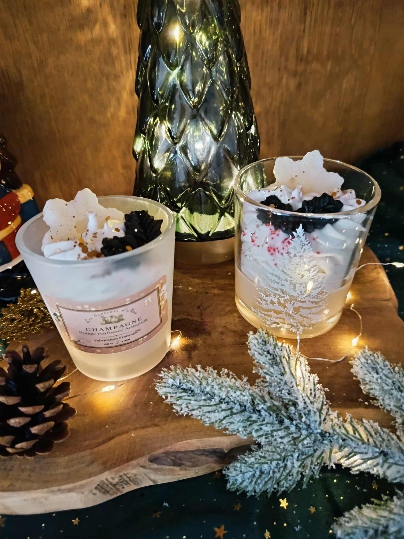 Succombez au charme de notre bougie chantilly parfum Champagne, une création artisanale raffinée et originale.