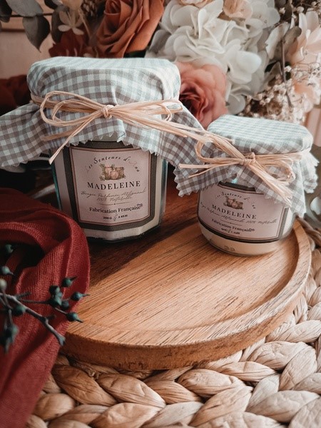 Plongez dans un univers rétro avec nos bougies parfumées d’Antan. Fabriquées à la main avec une cire végétale sans OGM et un parfum de Grasse , elles diffusent des senteurs douces et réconfortantes. Avec nos pots confitures et yaourts, habillé de tissu fleuri, à pois ou vichy noué d’un Ruban raphia, apporte une touche d’élégance et d’authenticité à votre intérieur.