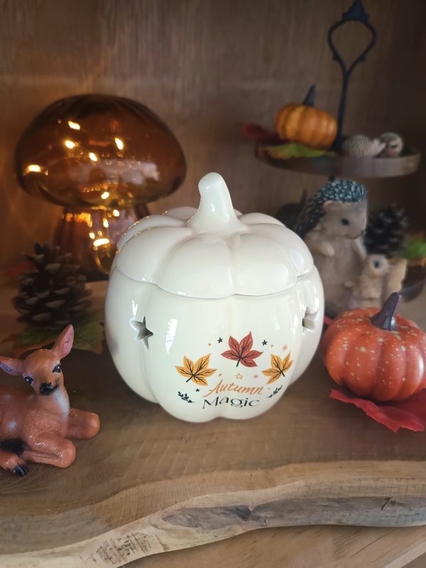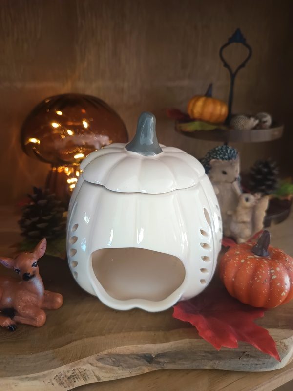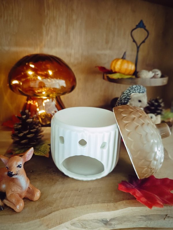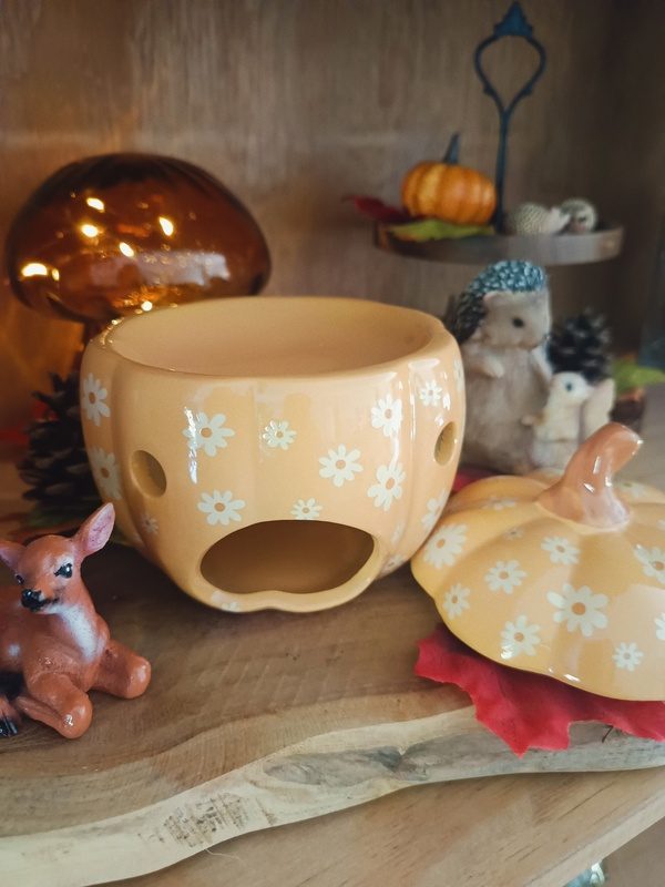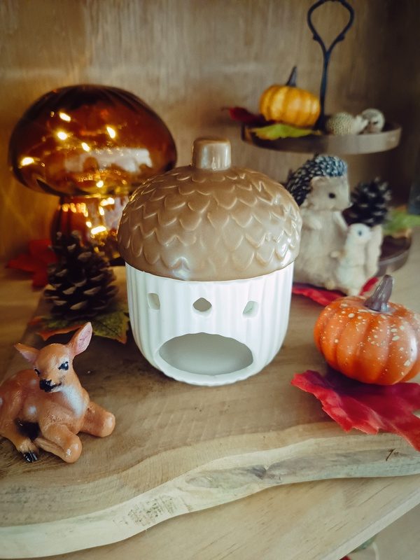 Brûle-parfum d’automne en forme de citrouille et de gland – apportez une touche chaleureuse et décorative à votre intérieur. Idéal pour fondants parfumés, il diffuse délicatement vos senteurs préférées tout en créant une ambiance cocooning.