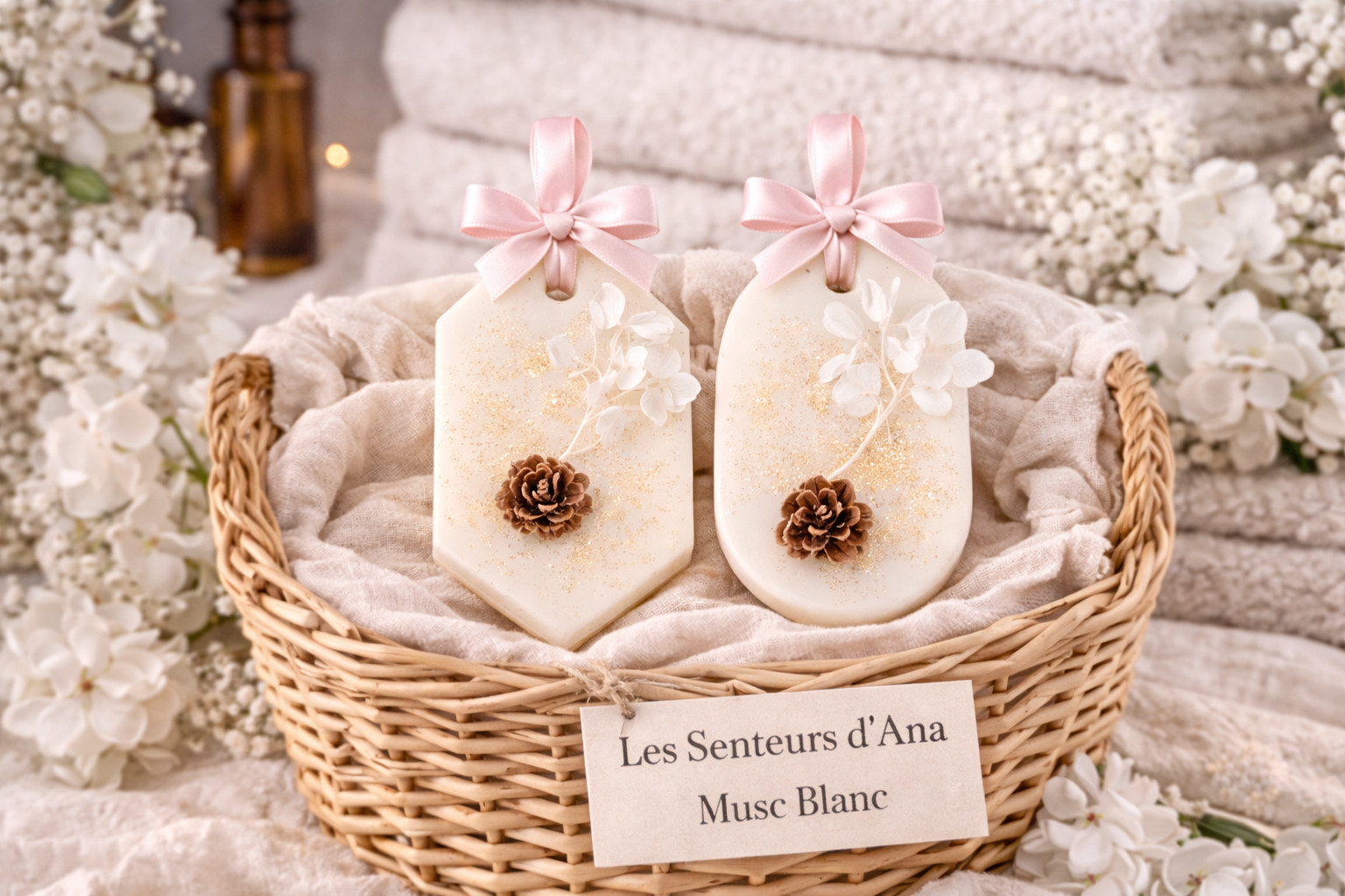 Son doux parfum de Musc Blanc, à la fois apaisant et raffiné, embaumera subtilement vos placards, tiroirs ou dressing.
