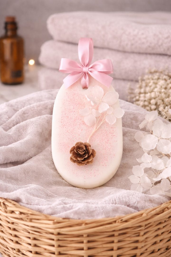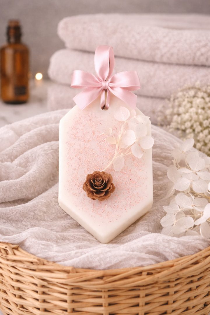 Offrez une touche de douceur à votre linge avec notre suspension dressing Musc blanc parfumée. Élégamment décorée de fleurs stabilisées et d’une mini pomme de pin ,elle diffuse une senteur douce et élégante tout en sublimant votre intérieur.